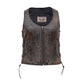 ART#388 Description: Sleek black leather biker vest with a fitted silhouette and adjustable lace-up sides, perfect for riding or casual wear. Detailed Features: Material: Genuine or faux black leather (based on context, likely genuine) Front Closure: Heavy-duty front zipper with an additional snap button at the top for extra security...